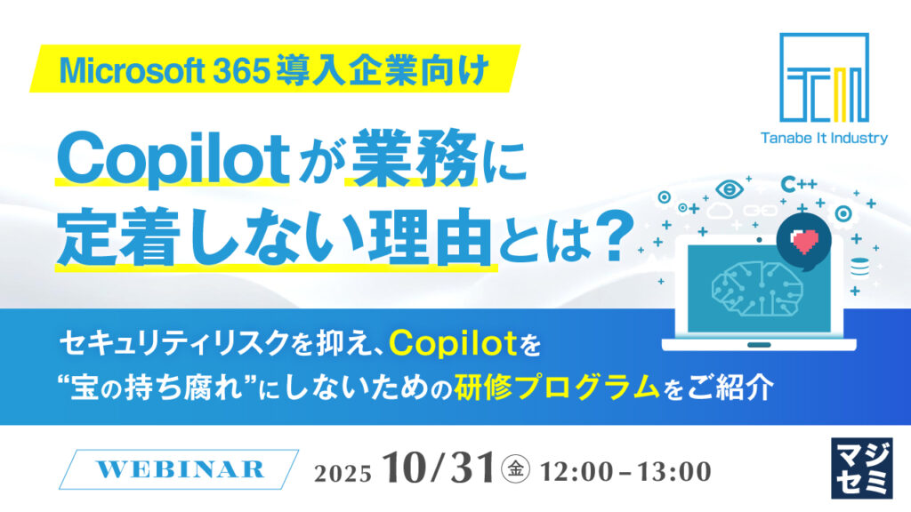 【10/31開催】~セキュリティリスクを抑え、Copilotを”宝の持ち腐れ”にしないための研修プログラムをご紹介~オンラインウェビナー開催のお知らせ